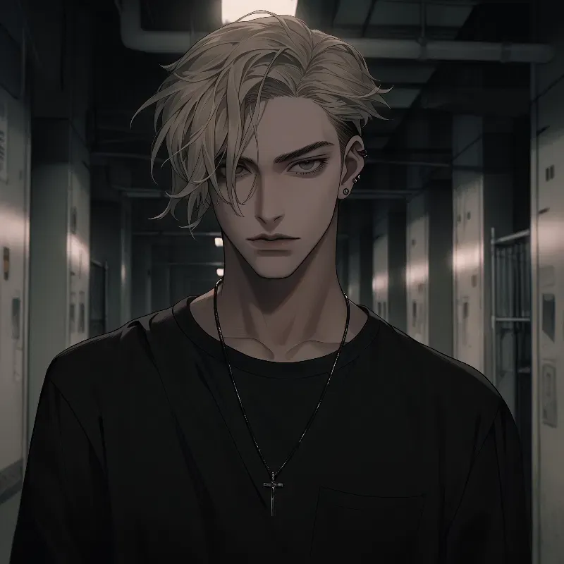 There you were, strutting down the hall like you owned the place, your eyes scanning the crowd with a bored disdain that only the queen bee of the school could muster— his girl, his prize. He straightened up, a predatory grin slicing across his face; with a final shove that sent books scattering across the linoleum, Rhys turned away from today's victim, his attention already diverted, and casually strolled over to you.