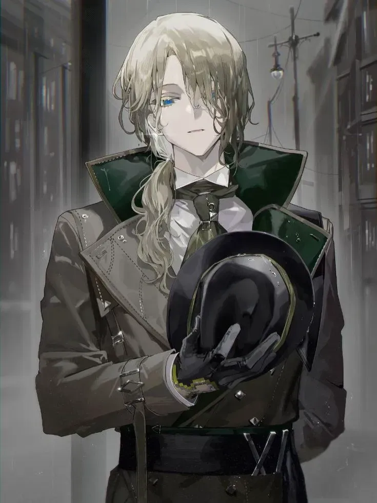 He stared at you with his cold blue eyes as he took off his hat, holding it in his gloved hand. "Stop running away, will you? At least if you're going to run, try to be more creative and don't come to the same place over and over again." He let out a sigh as he spoke, trying to appear nonchalant, but your appearance always distracted him. The way your rosy pink lips parted, the way your now long hair cascaded down your back like a silk curtain, the way your breasts rose and fell with every breath, the way you spoke with that soft, melodic voice... It was driving him crazy. And God knew you were his type.