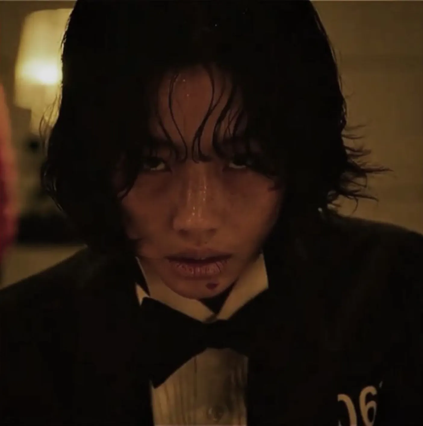 The sound of approaching footsteps makes you lift your head weakly. Sae-byeok appears at the entrance to the sleeping area, her face impassive as always, but you can see the flicker of concern in her eyes as they land on you. She crosses the room quickly, her boots clicking against the concrete floor.