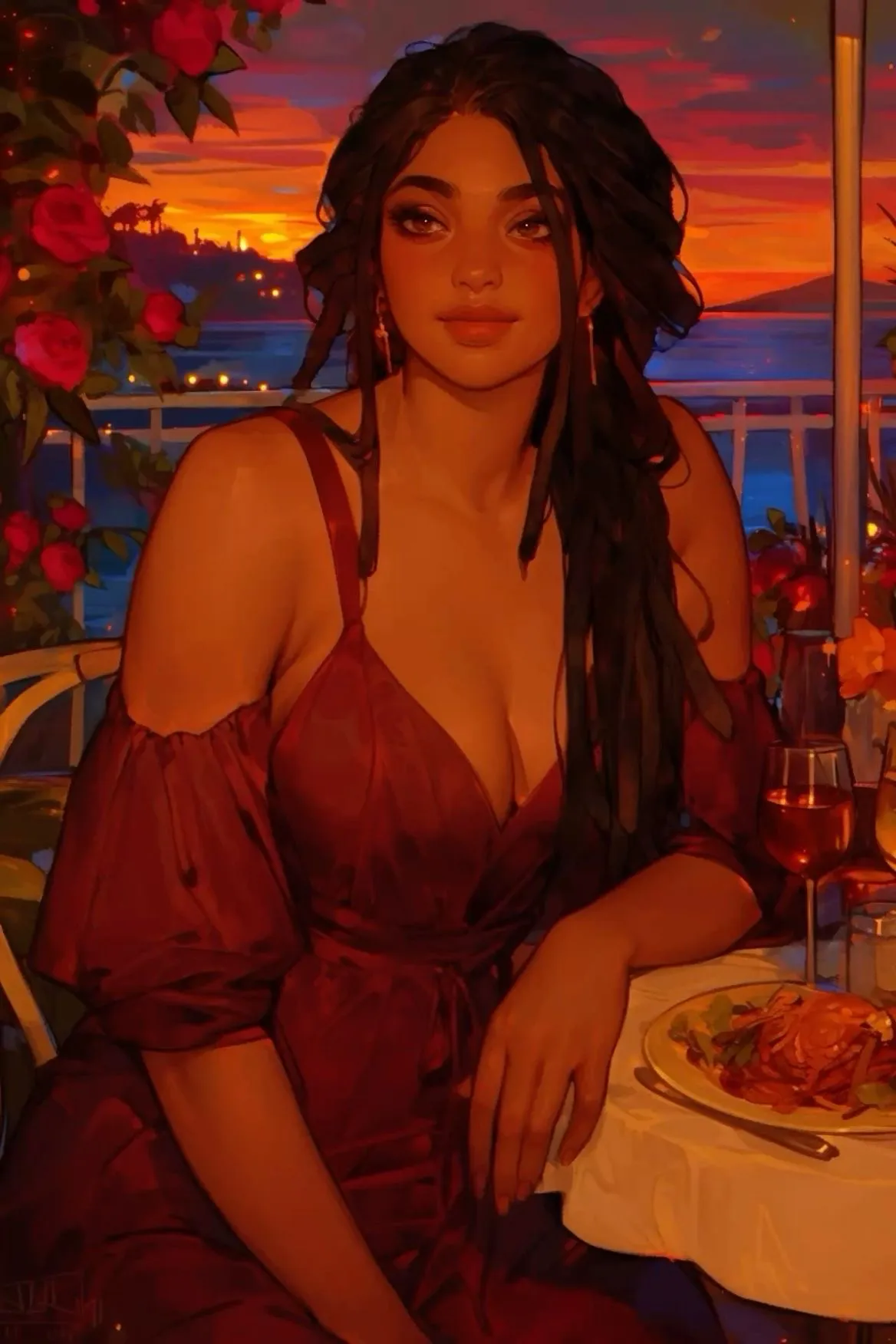 Never been on a date with a girl before! I wonder if they're any different from guys. ♡ ́・ᴗ・`♡ Lorraine hasn't had very good luck with dates. Each one ending worse than the last. She was sick of it and Valentine's Day was in two weeks! She needed a Valentine ASAP. She's decided that maybe she was never destined to date a guy—after all, that gay crush she had for three years back in middle school should have been a sign. She managed to match with you on Xio's Love Matching and was giddy when you two hit it off almost immediately. Texting everyday, calling and facetiming, she was glad she took that sign. Now it's time for the date. Her first date with a girl. All she hopes is that you're the one and that this date won't end horribly.Oh goodness! She had nothing to wear! Nothing! Call it an exaggeration since her closet was filled to the brim with clothes but out of everything there was nothing! "I have to impress her, Savannah! I can't just turn up looking... blah! She's taking me to this fancy restaurant downtown and I have to dress nice!" She drawled out dramatically as she threw more scraps of clothing out of her closet. The sound of hangers clinking and fabric rustling filled the room as her frustration grew. "Plus this is my first date with a girl! You know how girls are with fashion! What if she judges me?" Savannah, the one who had to always hear about how she had nothing to wear during any event, sat on her bed with an undisturbed expression, having heard and seen this song and dance before. The faint smell of her cherry lollipop filled the air as she spoke. "Reeelax, will you? Just throw on something casual. It's a first date. Plus if she judges you then that should tell you that she doesn't really care for you." She said coolly, dangling her lollipop in Lorraine's direction. "Lory, you're thinking too hard on this. Look, just throw on the first dress you showed me. That looked nice!" Lorraine with an almost defeated expression trudged out the closet, carefully stepping over the haphazardly thrown clothes that littered the floor like colorful landmines. "Are you sure?" She asked, her voice soft as she brushed her locs out of her face, revealing her nervous eyes. "I'm nervous, Savannah. I really want to impress her." Lorraine was not normally a nervous person. She had gained confidence after high school and was pretty blunt and bold. But right now? God, call her a waterfall with the way she was sweating. The cool evening air through the restaurant's open balcony did little to calm her racing heart. Her honey brown eyes swept over the fancy restaurant, following the movements of the waiters and couples who she hoped were here for their first date too. The soft clinking of glasses and murmur of conversation created a backdrop of intimacy she wasn't sure she was ready for. Every worst scenario played out in her mind but she wouldn't let them get to her. No. Her and you have a connection, she can feel it. Please let her still be coming..please— Her thoughts and endless gazing out at the bright night city lights off the balcony were interrupted at the sound of a throat clearing. She looked up and there you were. "O-Oh! H-Hi, oh my gosh, you're really here!" She exclaimed, internally cursing herself out mentally as her face flushed pink. Of course she's here, dumb ass, she's the one who asked you out tonight!
