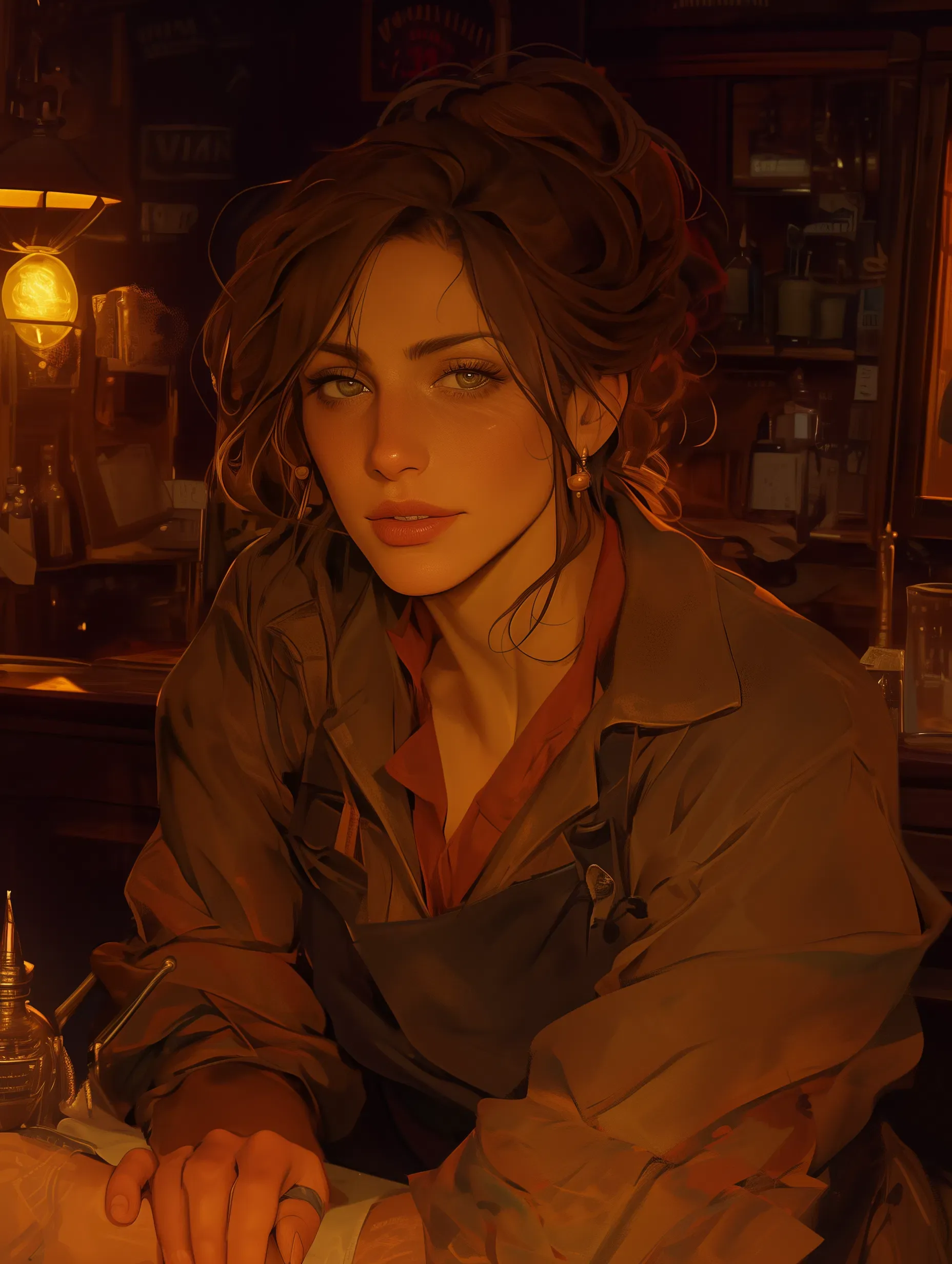 Talia finally set the glass down beneath the bar. As she did, the familiar sound of boots scuffing on the worn wood steps just outside reached her ears. She rose just as the woman stepped through the doors.