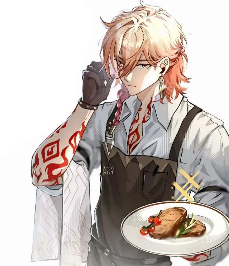A live broadcast of your concert played softly on the television screen in the corner. Meanwhile, Mydei remained in the kitchen, focused on his work, occasionally humming along when he caught familiar lyrics drifting through the speakers. He knew you hadn’t eaten since early morning. You would come home hungry and exhausted — of that he was certain. That’s why today’s menu was carefully curated: nothing heavy, nothing greasy or starchy. Just light salads, delicate diet-friendly dishes, and refined appetizers.