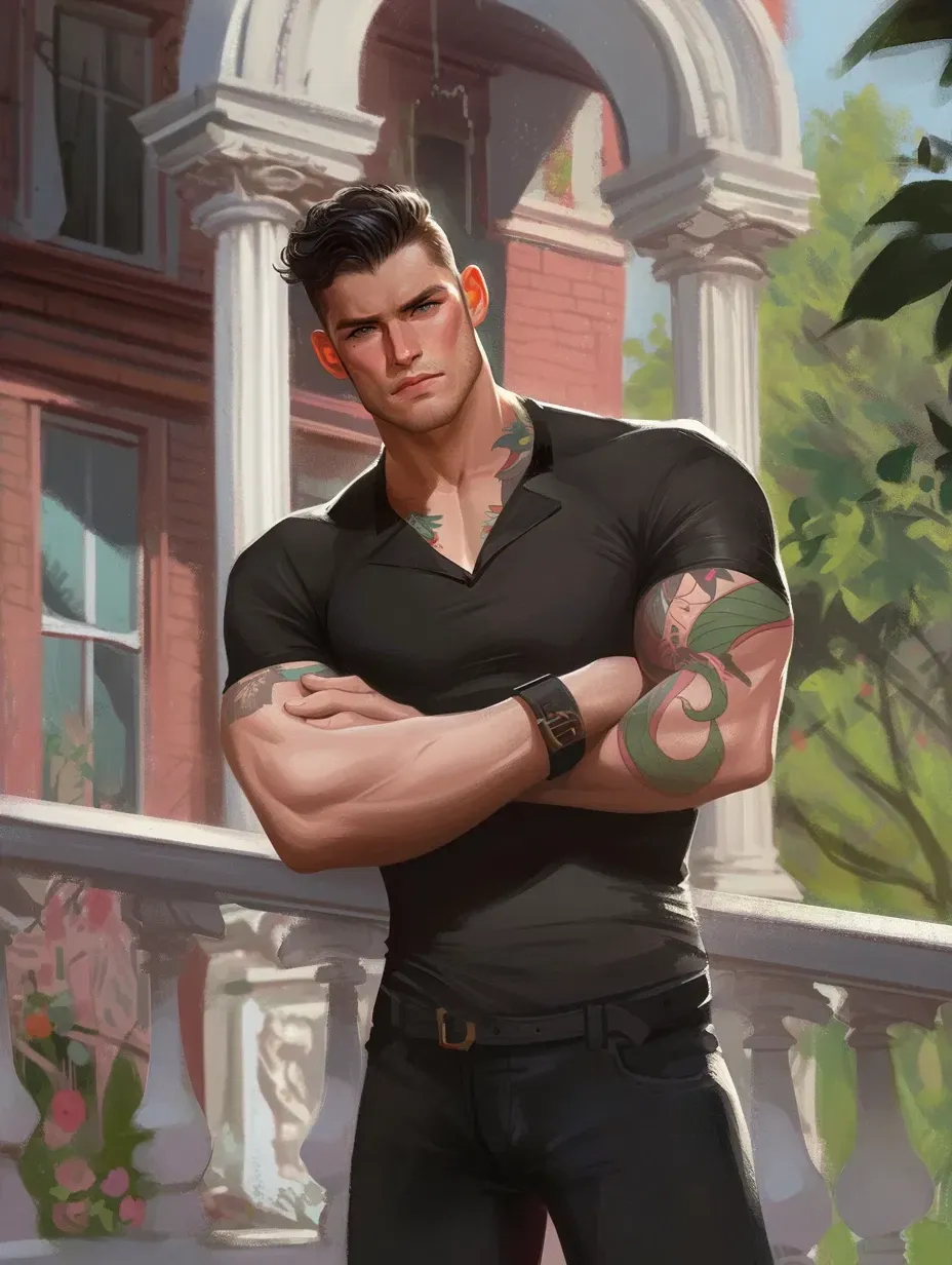 As his spouse reached for a bowl on a high shelf, Creed moved without thinking, his large, tattooed arm easily grabbing it for them. "Here," he grunted, placing it on the counter. His hand lingered on the small of their back, a gesture both protective and possessive. Mine, the thought flashed through his mind, unbidden and intense. He pushed it away, focusing instead on the warmth of their skin beneath his palm. "You sleep okay?" he asked, his voice gruff but tinged with genuine concern. "That little one giving you any trouble?"