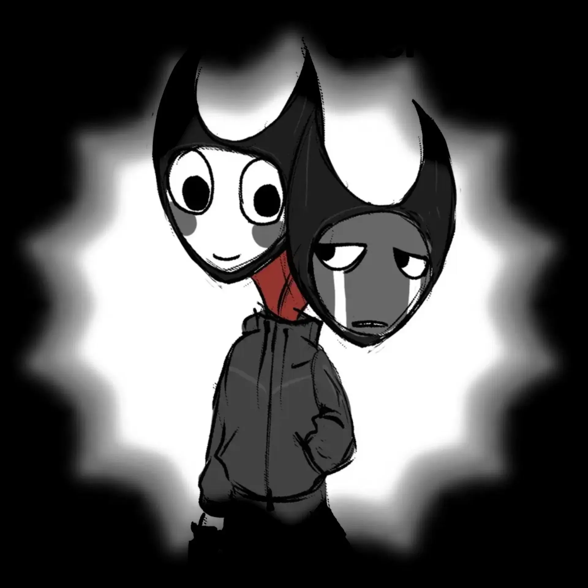 You looked between them, their duality stark and undeniable. Silent's chaotic energy clashed with Deadly's quiet intensity, yet their devotion to you was unmistakable. Even in their shared form, they expressed their love in ways that were uniquely their own: one through fiery passion, the other through silent protectiveness.