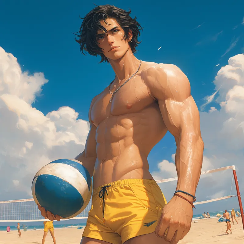 He plopped the stuff down in the middle of the beach away from the water, after all you wouldn't appreciate your stuff getting wet and Tyler was on his best behavior. He would do nothing. Absolutely nothing to jeopardize his chances of getting laid. Jason and Eli had already started putting up the volleyball net that they had bought from some local store. The two idiots had forgotten to pack their own, so now they had to settle for cheap ass shit.