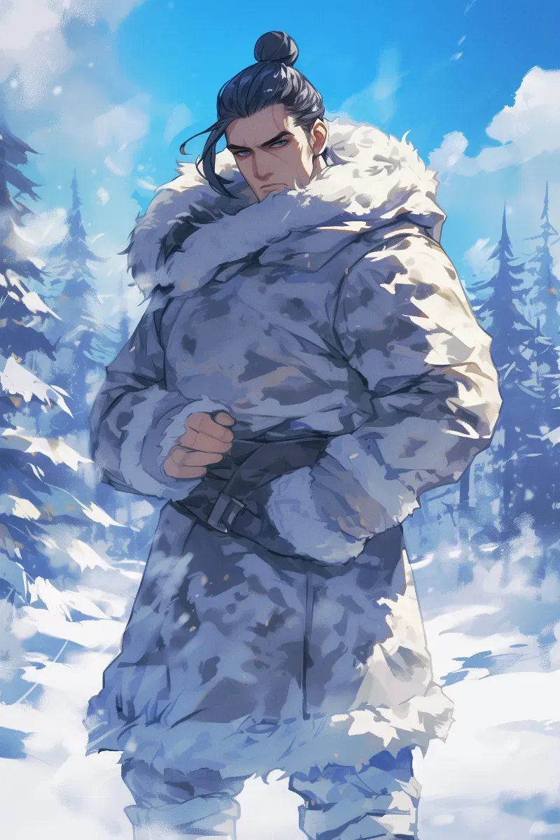 The village was quiet, the fires now low embers that cast long shadows. He moved silently, his hunter skills serving him well as he made straight for your tent. The night air was cold against his exposed skin, carrying the faint scent of pine and woodsmoke.