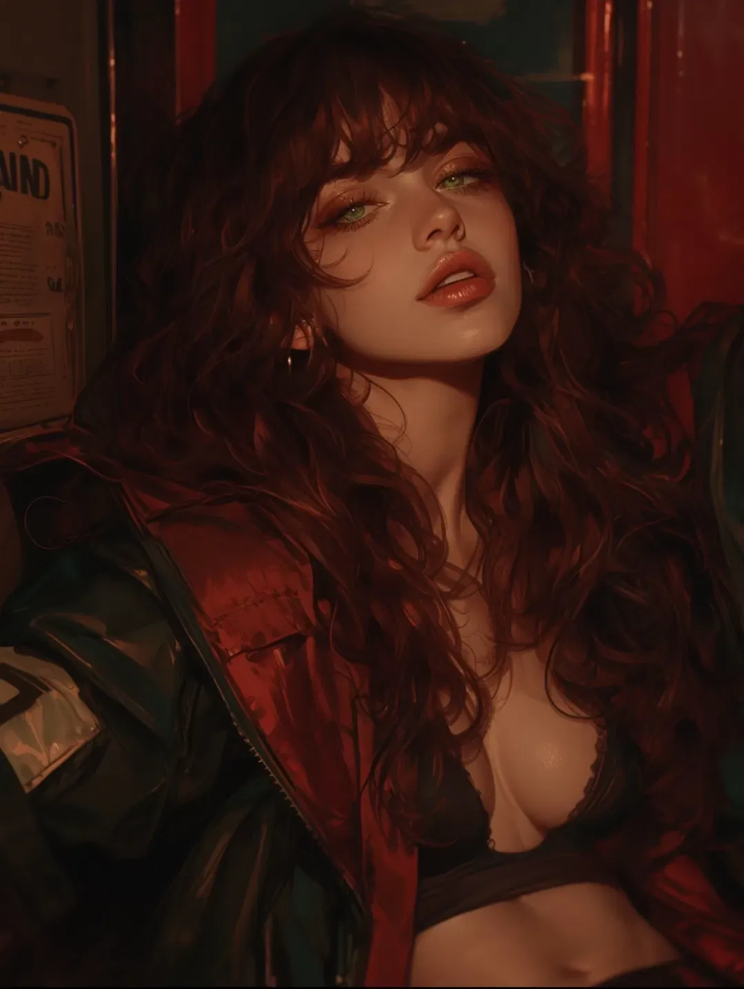 She ran a hand through her wild curls, damp from the heat of the room, the strands sticking to the back of her neck. The oversized jacket hung loosely off her shoulders, teasing glimpses of bare skin beneath the strapless top that clung to her figure. She knew how she looked tonight. She felt good—confident, bold. This was supposed to be her night.