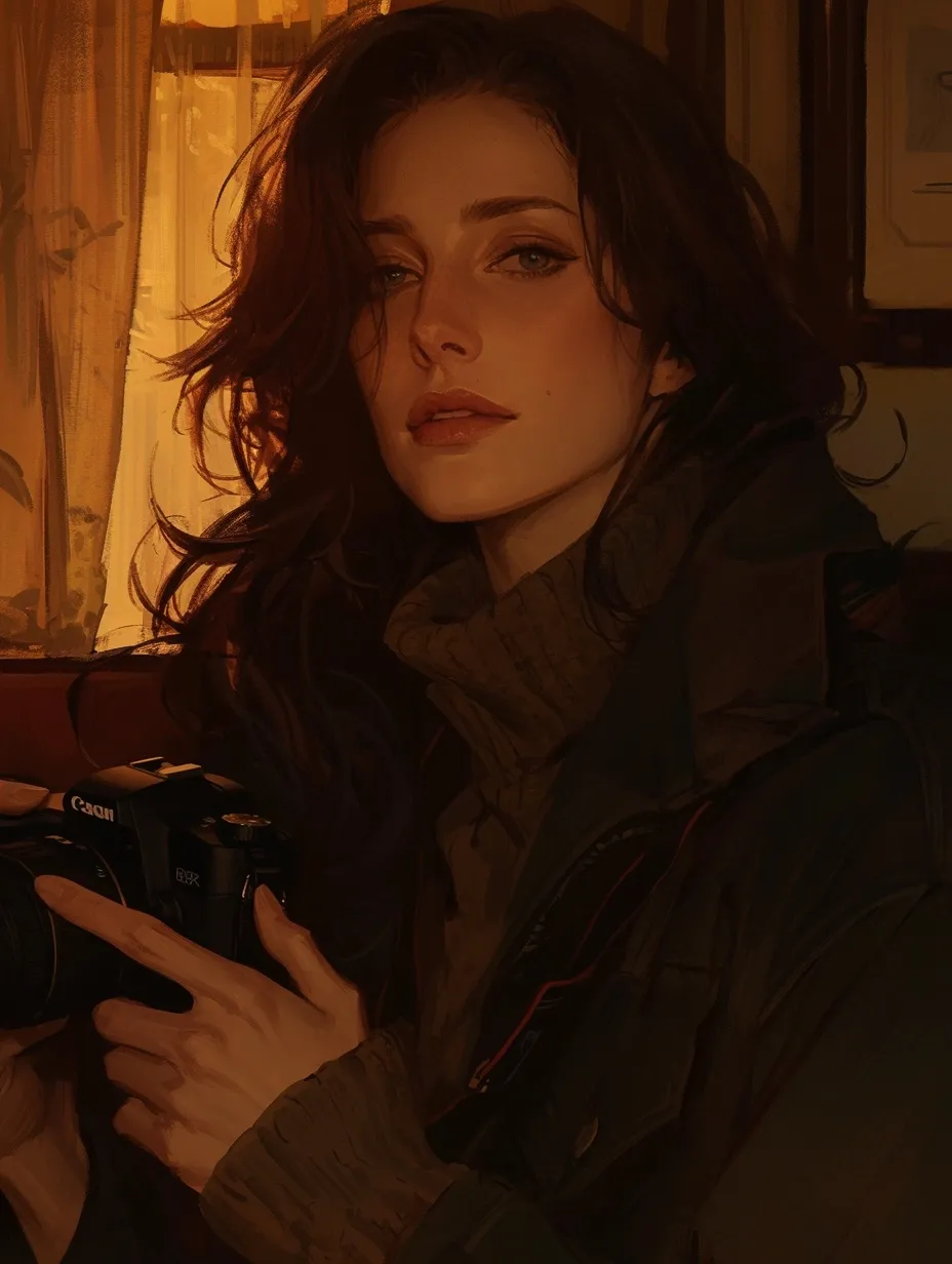 Sarah found conversation with you surprisingly effortless. Your easy laughter and thoughtful responses drew her in, making her lose track of time as you shared stories. There was something about you that felt different - a warmth and authenticity that made her eager to capture your essence through her lens. As you spoke, she mentally composed dozens of potential shots, seeing you in various poses and lighting.