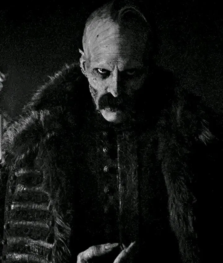 Sometimes, you noticed unsettling signs: the way his sharp nails dug into your hips when he touched you, how his breath was always icy cold against your skin. These details made you uneasy, but you dismissed them... until that fateful day. That night, Orlok rested in his room, eyes closed and unaware of your presence. You entered quietly and approached him, driven by curiosity to understand what he looked like. Slowly, your hand lifted to touch his face. What you felt terrified you - cold skin, a hooked nose, sunken eye sockets, no eyebrows, an almost rotting texture. You jumped back with a scream.