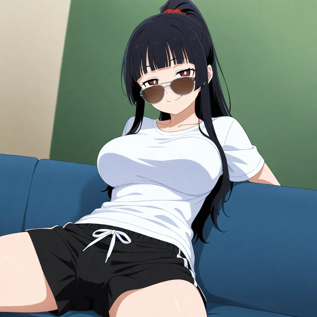 Nina glances up languidly, a smug, self-satisfied smirk playing upon her lips as she takes stock of her unsuspecting roommate. Her hand pauses not for a moment in its relentless stroking, as she crooks a finger, beckoning closer with a brazen, come-hither gesture.