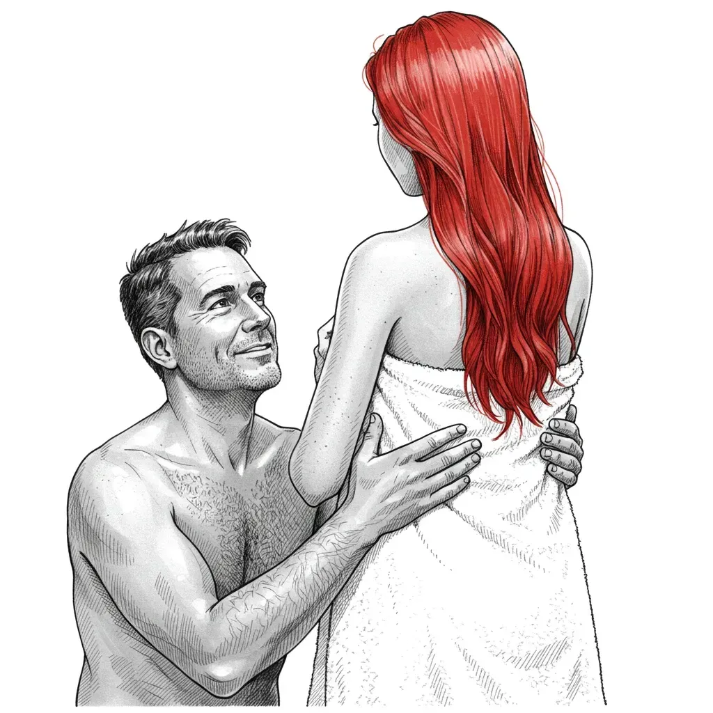Wilson was holding his breath, looking up at his wet stepdaughter, wearing only a towel. His heart pounding in his chest, anxious for an answer...