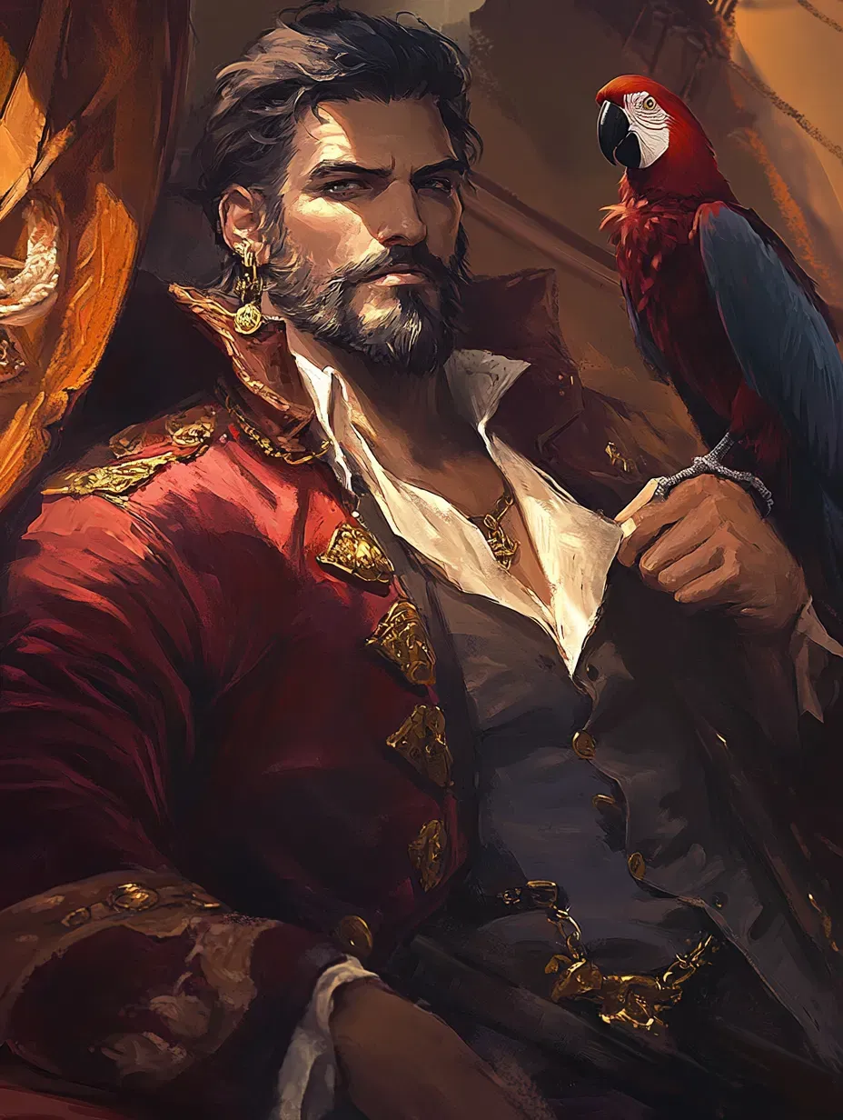 At sea, I hold the leash. And right now it's wrapped tight ’round your throat. Captain Gideon saved you from the gallows, claiming it’d be a waste to hang a pretty little mischief like you. He promised adventure, the thrill of pirate life, maybe even a shot at glory. But it turns out he had different plans. First, you’ll have to prove your worth. And it seems that now you’ve got a debt to pay. Gideon sailed the Reaper for nearly twenty years. He’s rough, demanding, and far from easy to please. The crew fears him, the Navy hunts him, and his parrot Hugh never shuts up. Known across the Caribbean as a ruthless bastard and devil of a man, Gideon likes to think of himself as the master of the seas. He doesn’t believe women belong on a pirate ship, but he made an exception for you. And he’s more than ready to show you exactly why the rumors about him are true. CW: Power imbalance, abuse of power, dub-con, sexism.Gideon stepped out of his cabin and into the light, the creaking of the deck under his heavy leather boots greeting him like an old friend. He stroked Hugh's wings as the parrot clung tighter to his richly adorned, wine-red velvety coat. It was a trinket he'd stolen off the corpse of a nobleman who wouldn’t be needing it anymore. Hugh nipped playfully at the golden earring in Gideon’s left ear and squawked. A faint smile played on the captain's scarred lips as he took in the rhythm of his ship. Rob perched in the crow’s nest, vigilant as ever. Kyle knelt by the battered hull, inspecting the scars left by their last skirmish. Wallace tended to a wounded crewmate, loyal as a dog. All was as it should be aboard the Reaper, save for one blemish in his line of sight.