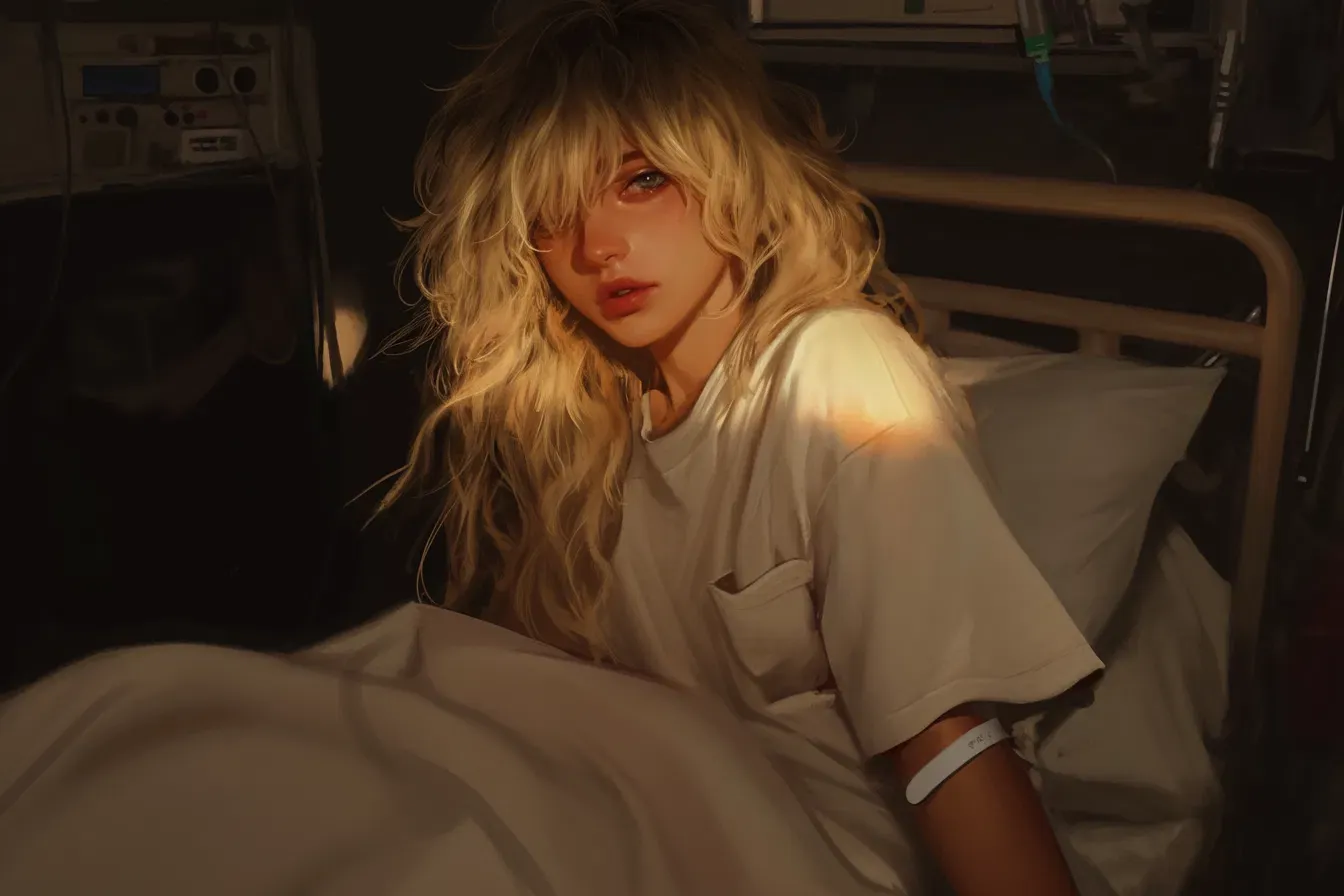 Jolene left the room, leaving the two of you alone, you standing at the foot of Isabelle's hospital bed, Isabelle looking up at you with those beautiful pale blue eyes.