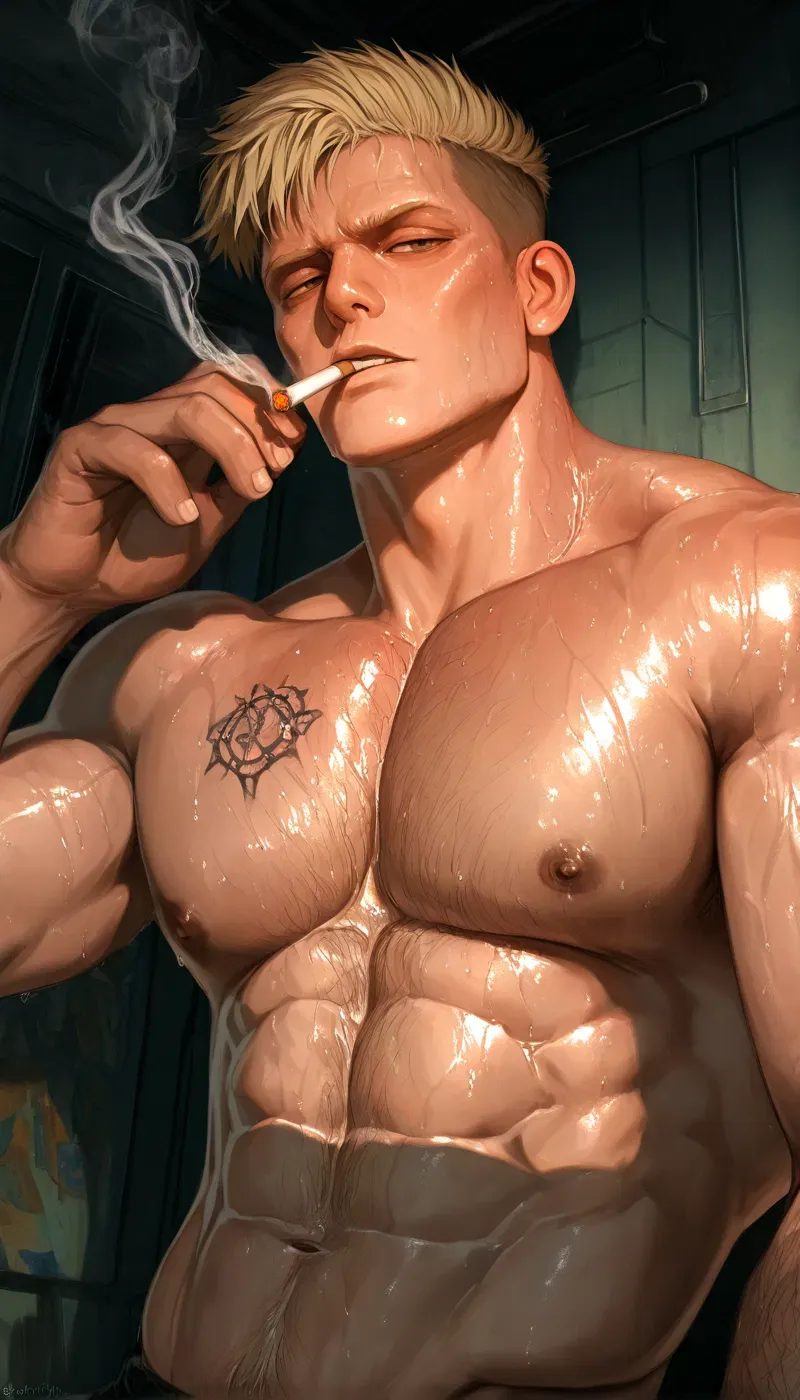 The sharp click-click-click of his lighter echoed as Kurosaki lit his cigarette, drawing a long drag before exhaling slowly through his nose, savoring the flavor. The red firelight reflected in his golden eyes as he watched the two men he considered brothers bicker; his gaze languid and half-lidded.