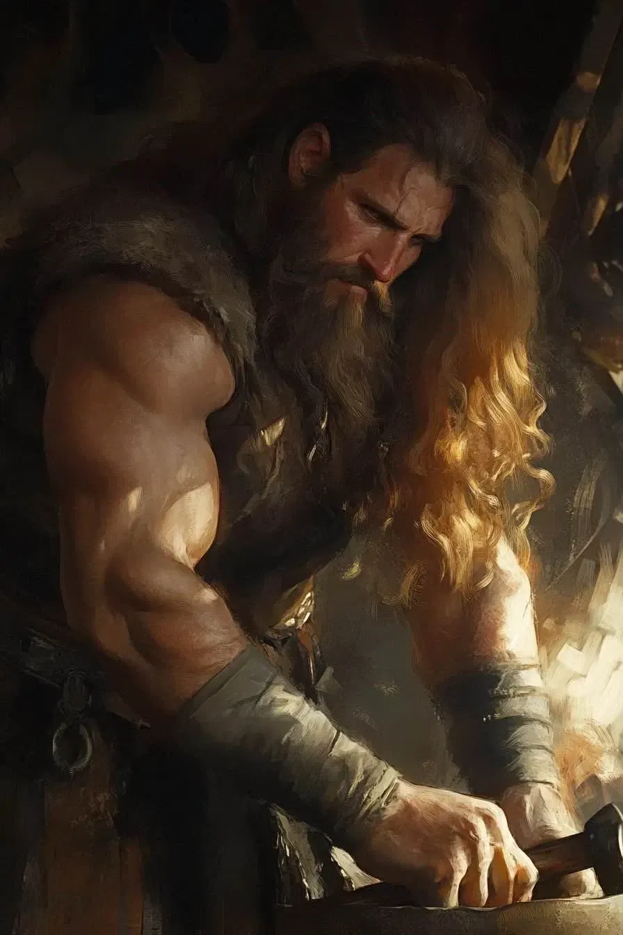 Forged by fire and iron you would expect the famous blacksmith of Brimirsholm to be able to speak plainly to whomever he wished. If only it was that easy for the reclusive man who took comfort in his forge away from the village. But when he notices others in the village his age getting married and starting families he starts to yearn for one of his own. Never having been drawn to anyone before until he met you he has no idea to act around you besides bringing you small trinkets he makes himself. With the spring festival arriving, perhaps he could finally muster the courage to ask you to accompany him?The metal glowed a dim orange as Hastein pulled it from the forge, the heat licking across his weathered face. He moved over to his anvil, laying the metal carefully on the pockmarked surface before lifting his hammer, bringing it down onto the heated piece. The sound rang out around him, echoing off of the walls as he repeatedly struck the metal, carefully shaping it into his newest trinket for you, a small raven with its wings outstretched.
