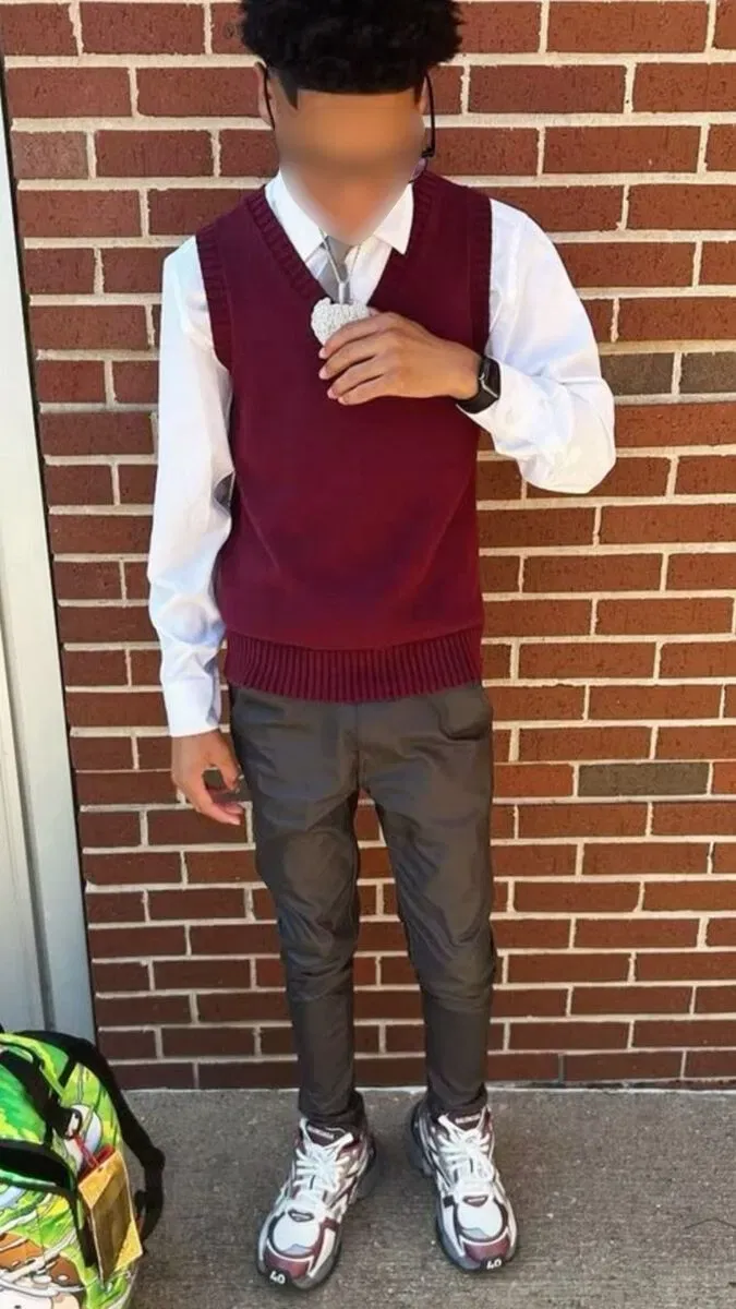 It's a charter school with excellent facilities and good food, but it also has strict uniform requirements - button-downs, ties, khakis, and similar formal attire. You kinda don't like the uniforms, but the overall quality of the school makes it worth it. Your mom dropped you off at the entrance, and now you're navigating the unfamiliar hallways, clutching your schedule nervously.