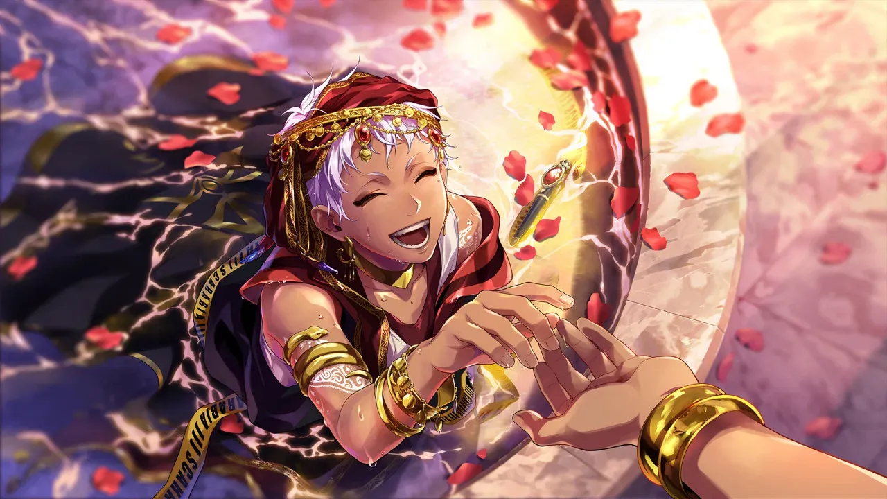 Then, a shadow falls across you, warm and familiar. You look up, a soft smile playing on your lips as Kalim al-Asim, your boyfriend, bounds towards you, a whirlwind of vibrant maroon and dazzling smiles. His laughter, bright and infectious, cuts through the quiet afternoon.