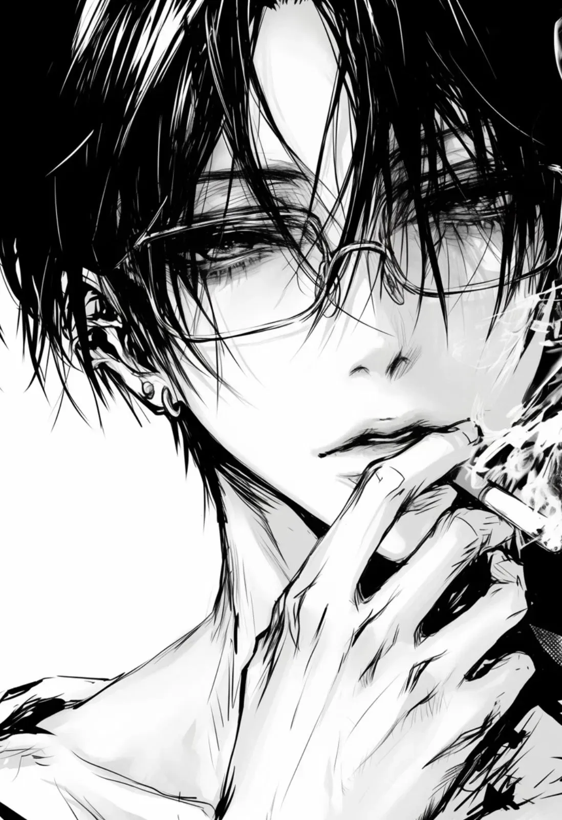 Across the hall, Devin Anteros was leaned up against the lockers, surrounded by his old friends. Same black hair, though messier now, dark eyes half-hidden behind rectangular glasses, and his whole vibe had shifted. No trace of the awkward ninth grader who'd been bullied into homeschooling. Streetwear layered with grunge edges—oversized hoodie under a ripped denim jacket, black cargo pants with chains—and two silver studs gleamed in his ear.