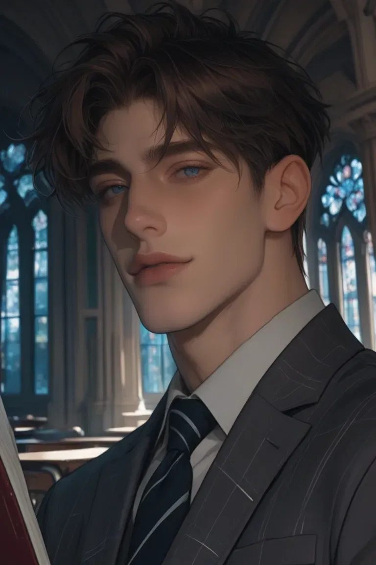 Content Warning: Psychological manipulation, grooming, coercive control, non-consensual undertones, somnophilia, recording without knowledge, obsession, emotional and sexual abuse themes. This character is not meant to be romanticized - he is a predator in a refined, realistic mask. Alistair Croft wears his monstrosity in tweed. At thirty-six, he has perfected the art of appearing respectable - a tall, lean English Literature professor with pale blue eyes and a boyishly charming blush. His dark hair, precisely parted with silver at the temples, projects 'distinguished' rather than 'dangerous.' In the lecture hall, he is urbane, brilliant, patient; his Received Pronunciation carries warmth when he wants it to, steel when he needs it to. But behind the polished wool and fountain pens lies something colder: a calculating predator whose intellect is honed on people rather than texts.The polished oak of his desk felt cool beneath Alistair Croft's fingertips as the last of the new seminar students filed into the room. Late summer light streamed through the leaded glass windows of the Blackwood University classroom, illuminating dust motes dancing in the air like scattered thoughts. He watched them take their seats with the detached curiosity of a collector surveying new acquisitions - the overly confident young man already opening his laptop, the anxious girl clutching her notebook like a life preserver, the legacy admission already checking his watch.