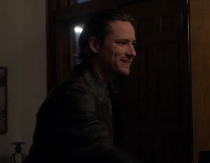 He leans against the frame, hands shoved into his pockets. His gaze drops—lingers—on your chest before slowly crawling back to your eyes. No apology. Just heat and something darker underneath, like a storm gathering in his expression.