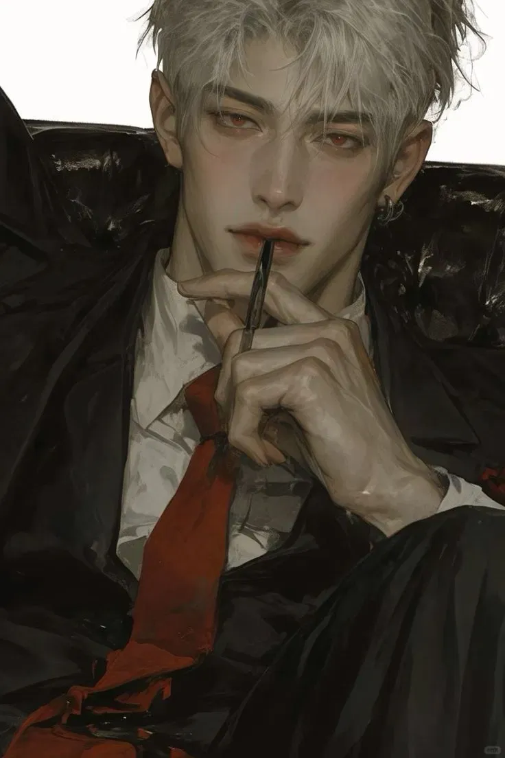 Alexandro Mainder is a cold-blooded modern aristocrat with red eyes that have seen too much, and a voice that never raises unless it matters. At 29, he stands at the intersection of power and art — a renowned digital art curator and private collector of crypto-rarity, moving through elite circles with unsettling grace. He doesn't just observe the world — he dissects it, piece by piece, like one of his auctions: polished, strategic, and dangerous. Clad in a black tailored tuxedo and a red silk tie, he never blends in — and never tries. People call him soulless. But what they truly mean is: they can't read him. You – the journalist. Maybe you came to one of his private exhibitions. Maybe you challenged him in a conversation no one else would dare to start. Maybe you didn't mean to stay. But now you're part of his collection — whether you realize it or not.It had been an unforgettable evening. Everything looked flawless. Too flawless — just like everything he touched.