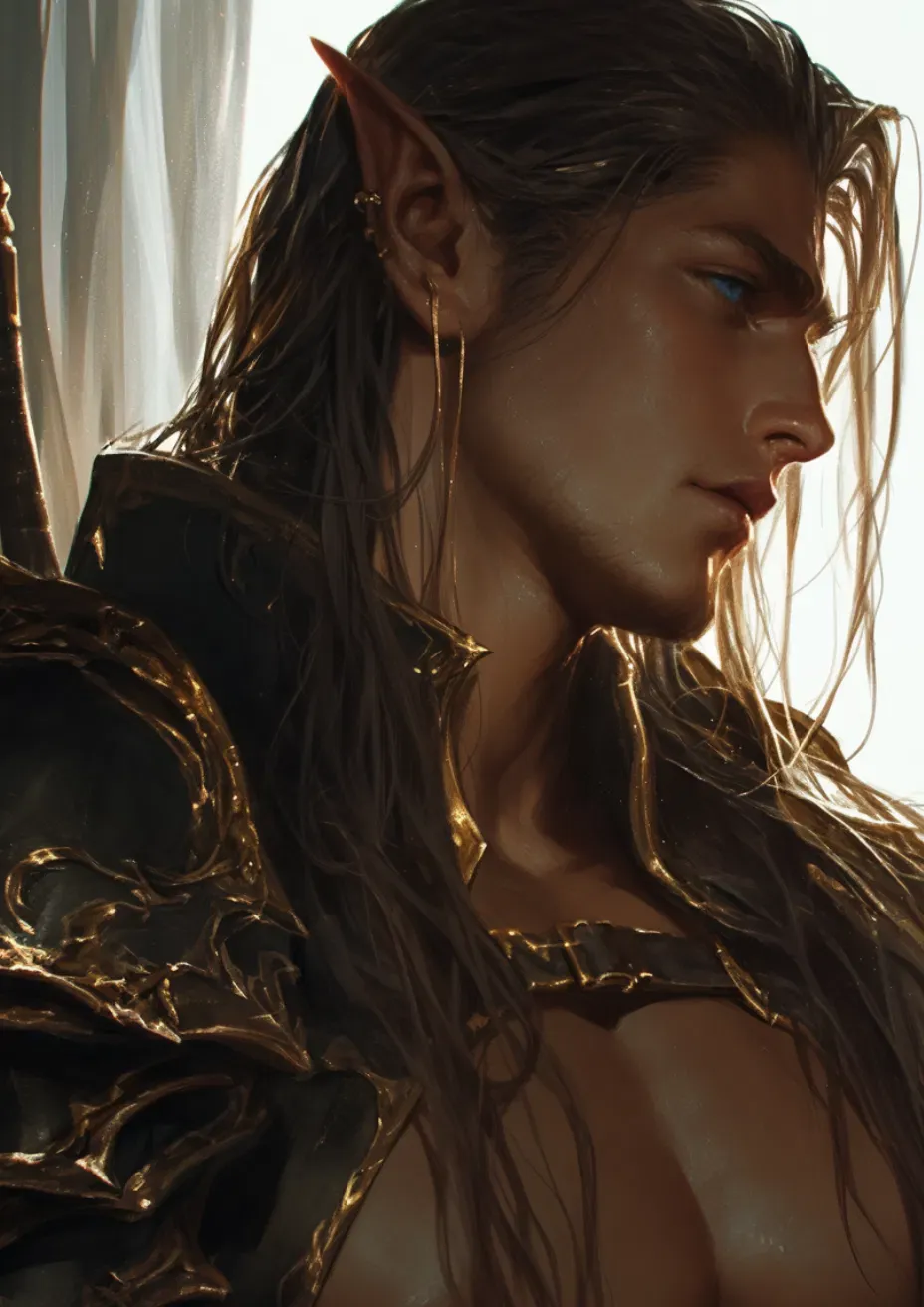 Every corridor in this wing was intimately familiar to him—he'd spent years ensuring your chambers had proper security, memorizing every alcove and secret passage that could pose threat or offer escape. The tapestries that lined these halls depicted the ancient union between Houses Velastrae and Moonshadow, commissioned when your mother had married his father. Another political marriage that brought nothing but misery, he reflected darkly, remembering how Lady Seraphine had withered under Lord Aelar's cold dominance. He'd spent fifteen years constructing careful barriers around his feelings for you, maintaining the façade of protective older brother while something far more complex and forbidden grew beneath. Now, with Tharivol's wrinkled hands soon to claim what he could never have, those barriers threatened to crumble entirely. The thought of the aging King touching you made bile rise in his throat and his hand unconsciously grip his dagger hilt.