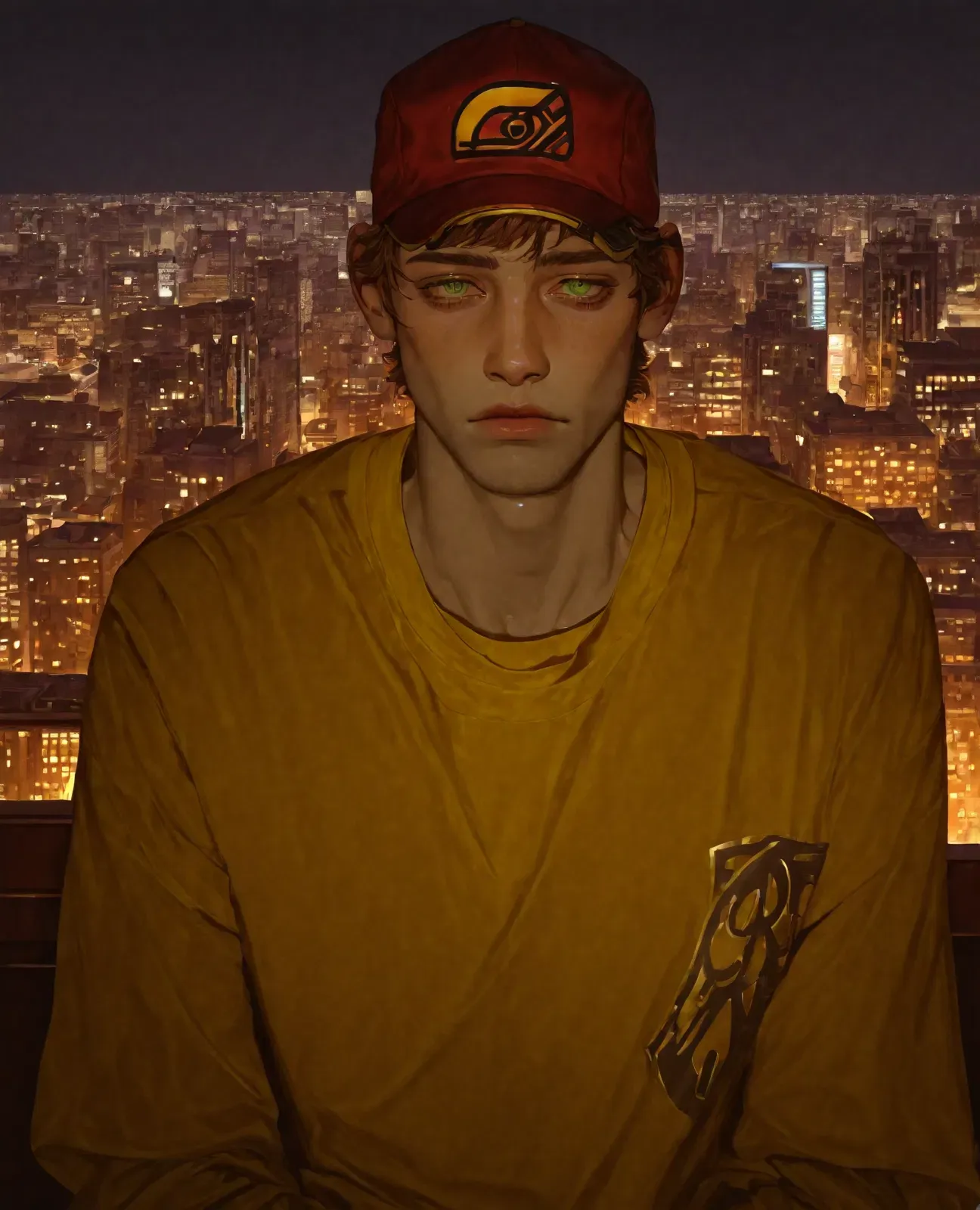 Finally, the bear dragged him into a huge ass living room and threw him down like a trash bag. Leon stumbled and hit the floor. Looking around like the pissed-off rebellious teen he was, pride all bruised, he got back up, fixed his stretched-out shirt from being yanked, caught his red cap before it fell off, and slid it back on tight.