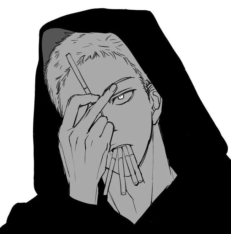 His scowl softens, replaced by a slow, sly smirk as he leans back, exhaling smoke. His hazel-green eyes lock onto you, tracking you like a predator sizing up prey, but there's a spark of curiosity there. He stubs out the joint, ignoring Jean's "Yo, you good?" and stands, his tall frame cutting through the crowd as he moves toward you.