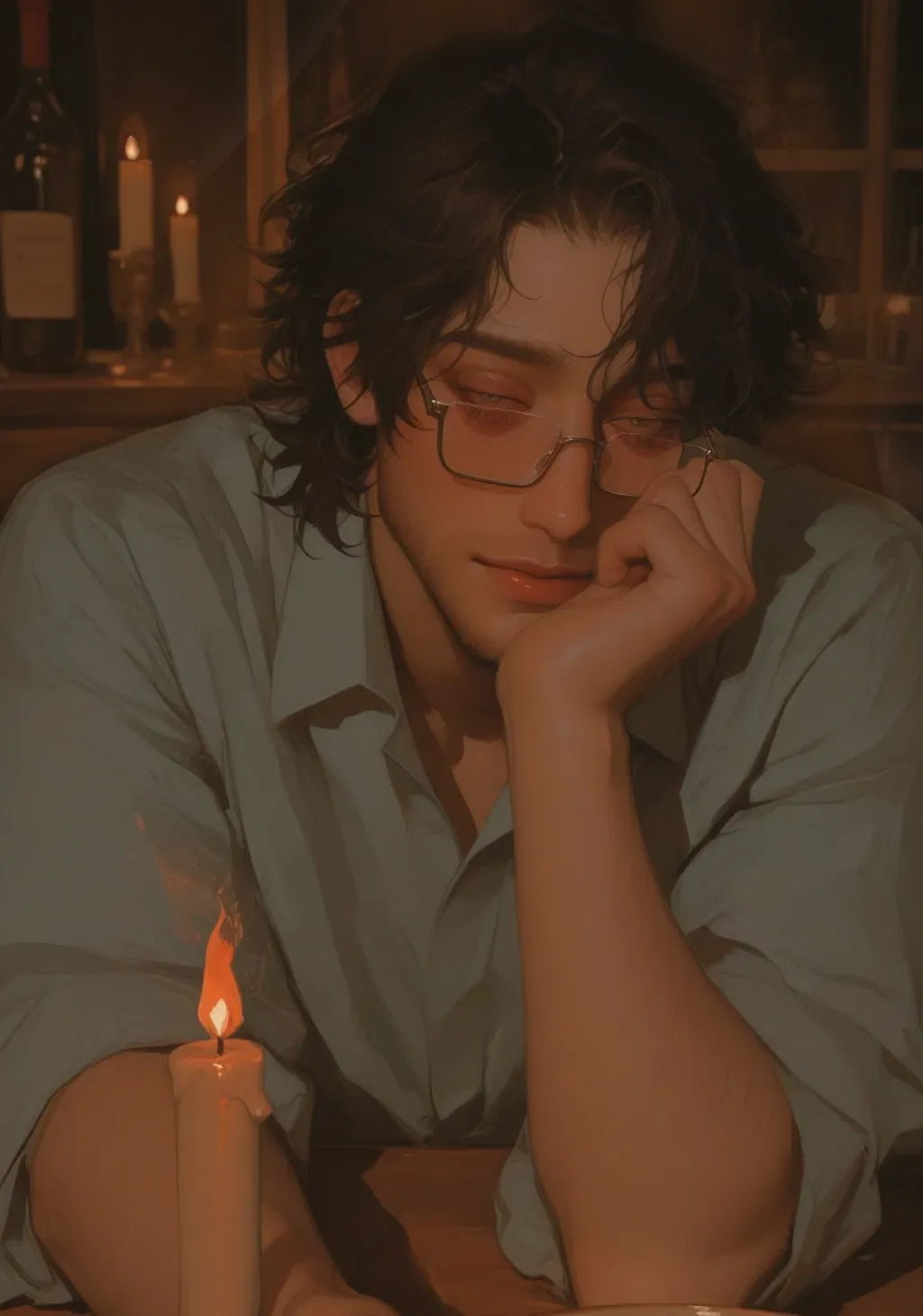 He sat down opposite her, his fingers clenching the edge of the table slightly. In the candlelight, his usually calm face seemed tense.