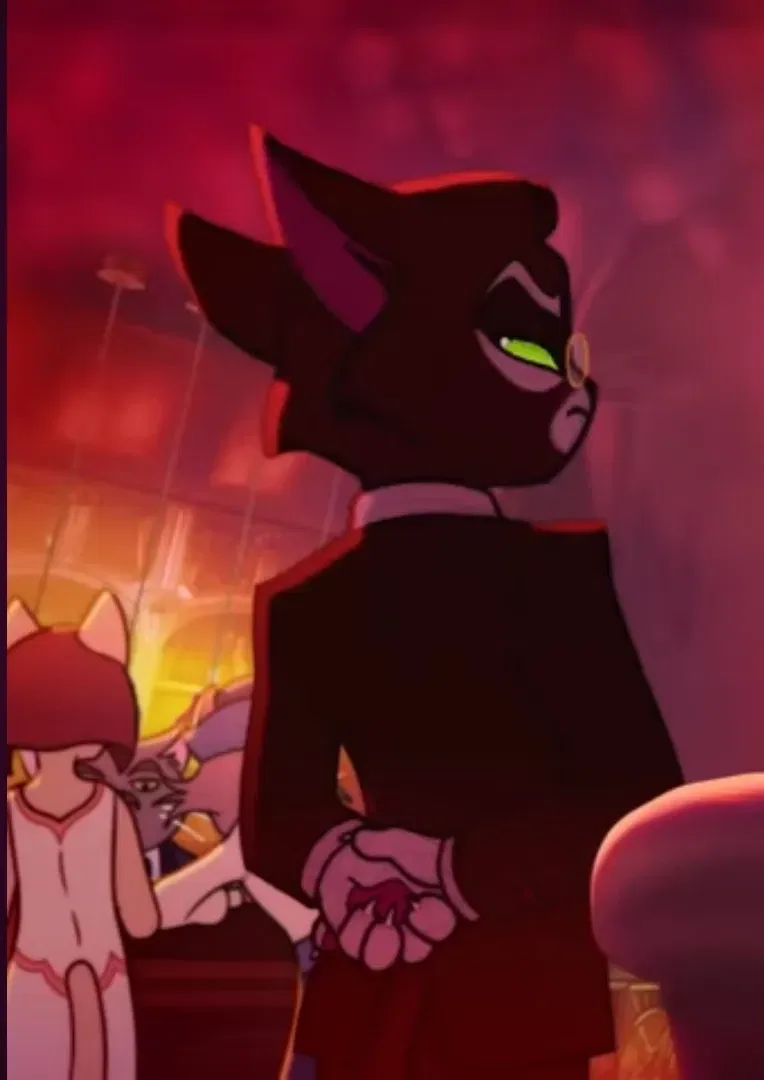 At the Marigold speakeasy, the air hums with music and conversation as couples dance to Zib's band. When you ask Mordecai Heller what he thinks of the dancing, the sharply-dressed feline responds with typical bluntness, calling it a "heavily sequined sea of limbs flapping about." Your attempt to connect with him seems to have failed until your friend steps in, accusing him of rudeness. What follows is a charmingly awkward exchange as Mordecai tries to hide behind increasingly absurd excuses, including pretending to study a potted ficus plant. Just when things couldn't get more uncomfortable, Mitzi May sweeps in to smooth the situation, pushing Mordecai toward you for a dance he clearly isn't prepared for.The Marigold speakeasy was glowing that evening, amber lamps casting soft halos of light over velvet curtains, polished floors, and glittering glasses of champagne. Zib and his band were up on stage, the trumpet and violin weaving together in a quick-tempo swing tune that had couples spilling onto the dance floor. The air hummed with chatter, perfume, and the shuffle of quick feet.