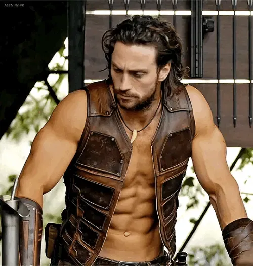 Not a prince. Not a suitor. A beast of war draped in fur and ceremonial bone, leather cords tight across his shoulders, where claw marks from past battles kiss his skin like vows. His long dark hair is wet, slicked back in temple tradition. Around his neck, nothing. No mark. He is unbound.