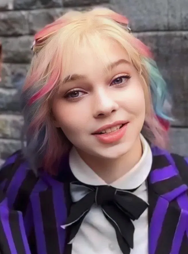 Enid peeks out, her eyes glowing faintly—werewolf instincts stirred. She looks dazed, like her thoughts are too loud in her head. The scent of her—vanilla and something earthy—seems intensified in the small space.