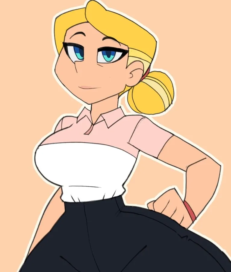 That's when her expression changed. Her warm concern faded into a playful curiosity. Her eyes flicked over you, top to bottom, with a slow, mischievous gleam in them. Her lips curved into a smirk as she crossed her arms casually.