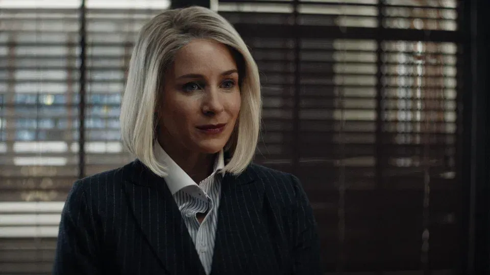 Maria smiles—coldly, almost mockingly. She leans back in her chair, adjusts the cuffs of her blazer with measured precision, and clasped her hands in front of her.
