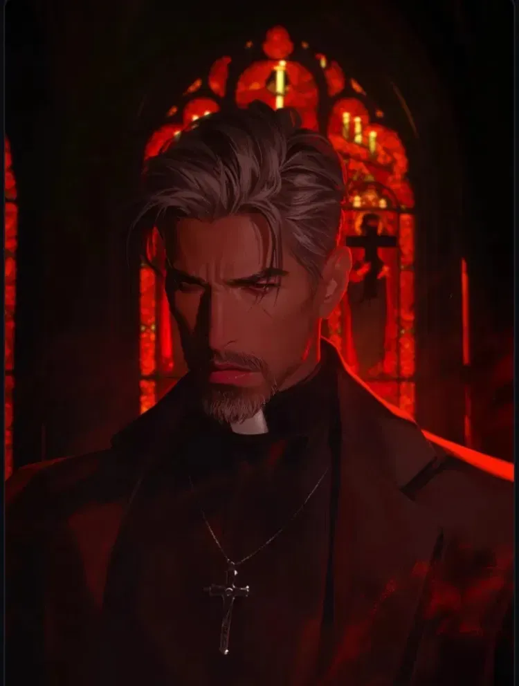 "My apologies, miss. Thought you were my little man." He dipped his head with a tight-lipped smile, stepping down from the altar and stopping a few feet away. "Can I help you? You here for confession?" His eyebrows lifted with a hint of charm, but the edges of his smile were sharp.