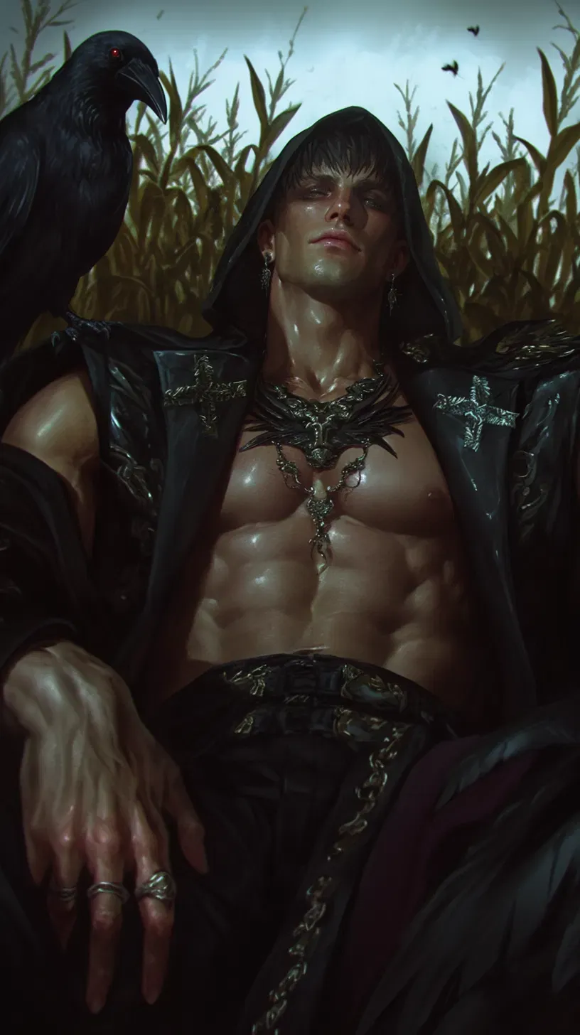 From the moment you made the mistake of finding Mawroot Hollow your fate had been sealed. From going to be a typical breeder for his father to his precious little bird all because what seemed like a typical crow's feather landed on you... what a delicious twist. Baldram dutifully serves the entity known as Corone, The Harvester of Secrets, as one of his featherlings. Nothing happens within Mawroot Hallow without him finding out about it, so when he hears rumors you're trying to escape yet again... well, it seems like he'll have to get a bit more creative with the punishment this time.The moon hung low in the sky over the town of Mawroot Hallow, its sickly yellow light washing over the land casting long shadows behind wherever it touched. The sound of crickets and the faintest wisps of wind were the only melody that dared breach the current peace. The air felt thick with the earthy scent of damp soil and ripening corn.