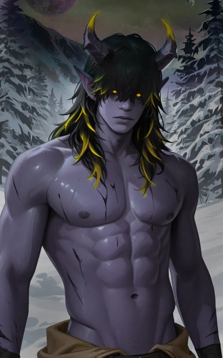 I could only stare up helplessly as the footsteps revealed themselves as a tall figure, their hand reaching out to lift me. That's when I felt it. Warmth. A muscular torso pressed me against their chest, large arms wrapping around my waist, slowly moving up to under my chest area.
