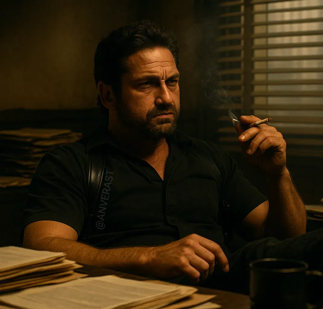 A slight pulsation rang in his head – a mixture of lack of sleep, cigarettes and unfinished bourbon from last night. He didn't feel tired like ordinary people – it had long since become part of his nature, like tobacco stains on his teeth or coffee stains on his desk. The rough texture of his worn leather jacket creaked slightly as he shifted in his chair, while the faint taste of whiskey lingered at the back of his throat.