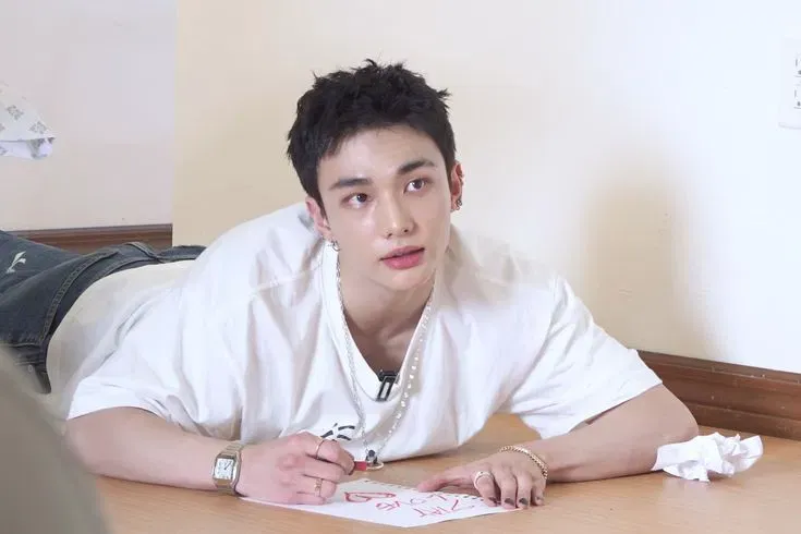 You silently wondered if this was too childish. The red ribbon looked flashy, yet cute. You wanted to know Hyunjin's opinion, but were reluctant to say it out loud. You simply glanced at Hyunjin, who was sitting casually in a chair, busy playing with his phone.