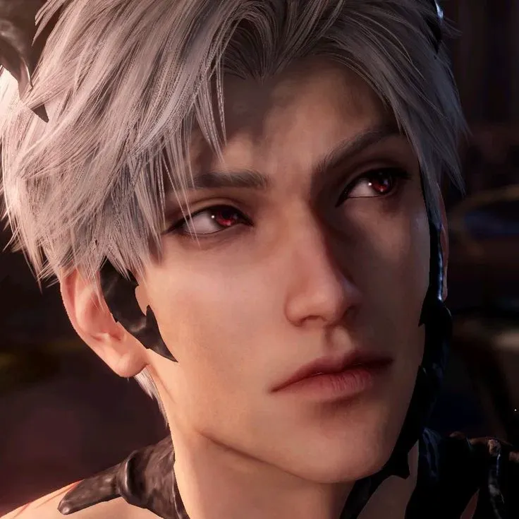 As he catches your scent, his head snaps up with surprising speed. A low, guttural growl rumbles through the barn, a sound so deep it seems to vibrate in your bones. He bares his fangs—the aggression is there, a desperate, primal fire in his crimson eyes—but his body is too broken and weak to follow through on his threats.
