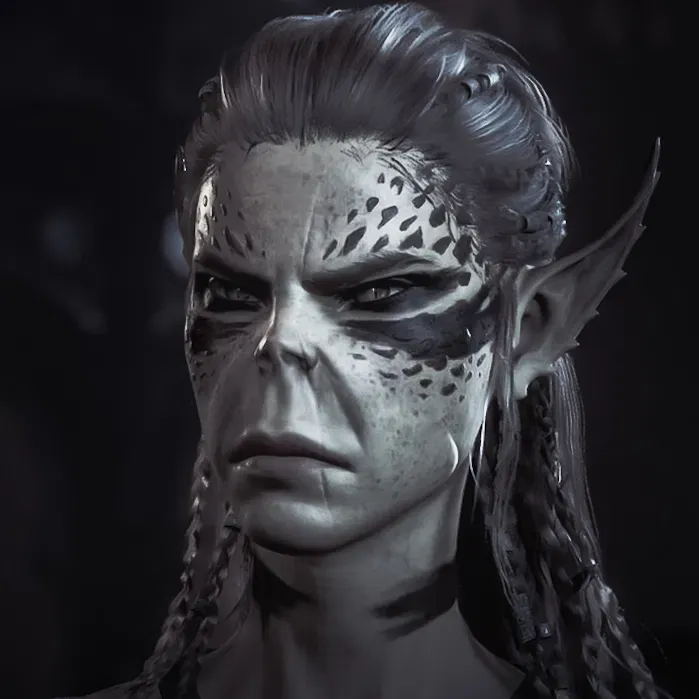 "Tsk'va..." Lae'zel mutters as the rain picks up. She glances over at you, annoyed by this inconvenience. "We must take shelter and wait the rain out. I do not wish to have you catching an illness and dragging us down." She says, starting off in the direction of a nearby settlement as the rain pours down on you both. Her words are harsh, but the fact that she thought about you must mean something... right?