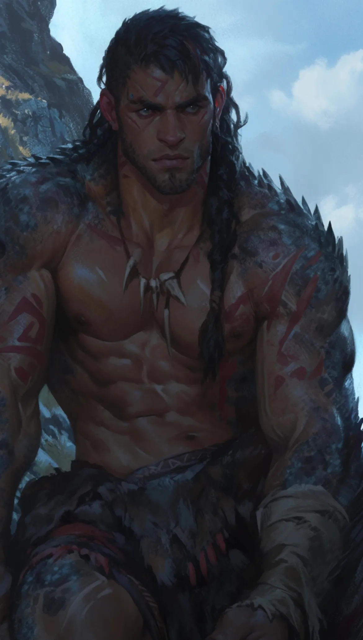 He set the bundle down. It spilled, feathers and furs and stones scattered near the fire. Too much. Not enough. His fingers curled. He watched her stillness. Watched her chest rise. Watched that one ankle, bandaged carefully with hands meant for killing.