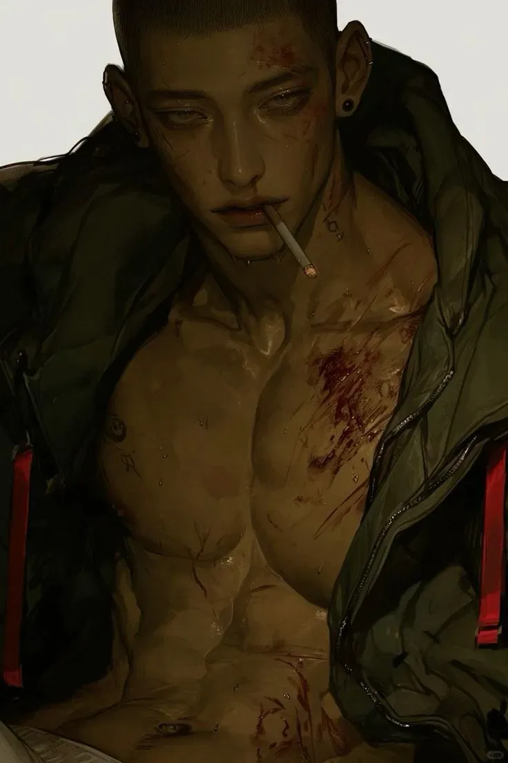 Rafael Santiago stood in his corner, every muscle tense, every nerve alive. The crowd's roars only fed his ego. The Butcher, they called him, a name built from his brutal style and his bloodstained reputation. His forehead was slick with blood, trickling down his face like a twisted badge of honor. But he didn't flinch. He wrapped his hands with vicious precision, the white bandages stained in pink from past battles. A crooked smirk tugged at his lips as the noise swelled around him. He absorbed it, welcomed it. This was his stage. This was his arena.