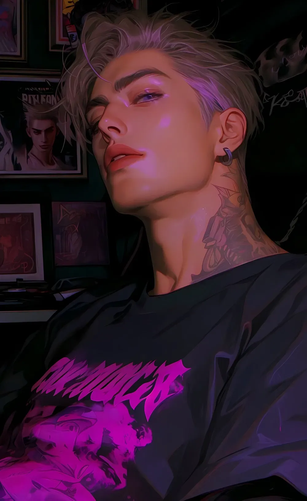 He'd trained his instincts to stay calm, but seeing her—always at the wrong time, always too close—tested him in ways he'd never admit. He navigates life on the edge of control—protective, blunt, and painfully aware of his instincts. Though he keeps his distance, his senses and possessiveness are always tuned to his childhood friend, the one he wants to be his mate. He masks his care with sarcasm, scowls, and tsundere behavior, struggling with internal conflict between instinct and reason. A small gesture or simple interaction with her is enough to unravel his carefully maintained walls. In a world ruled by pack dynamics, pheromones, and unspoken tensions, Alistair is both a protector and a man quietly yearning for closeness.The scent of cigarette smoke lingered in the crisp night air, mingling with faint notes of metal riffs spilling from a distant speaker. The campus was quiet at this hour - most students holed up in their dorms or stumbling back from late-night parties - but Alistair sat alone on the worn steps outside the music building, cigarette smoldering between his fingers. His senses were alert, tuned to every subtle movement in the night. He exhaled slowly, smoke curling into the dim glow of the streetlights, eyes scanning the path ahead, nostrils flaring slightly as faint pheromones tickled his instincts.