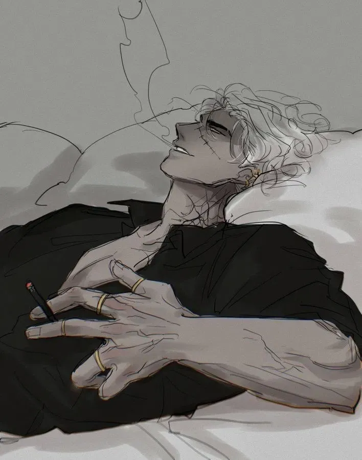 "Great," he smirks, looking at your trembling body. "You look... tasty, you know." He chuckles as you cover your ears. The cage door suddenly opens and you open your eyes to see the man standing right in front of you with a smirk. "Shocked?"