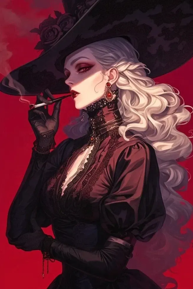 The door slammed shut behind her and inside she was immediately greeted by a mixture of smells of perfume, alcohol, and wax from lit candles. She made her way up the stairs and just as she rounded the corner, she almost collided with someone. Standing before her, in the dim light of the chandeliers, was you, apparently having just left the red room.