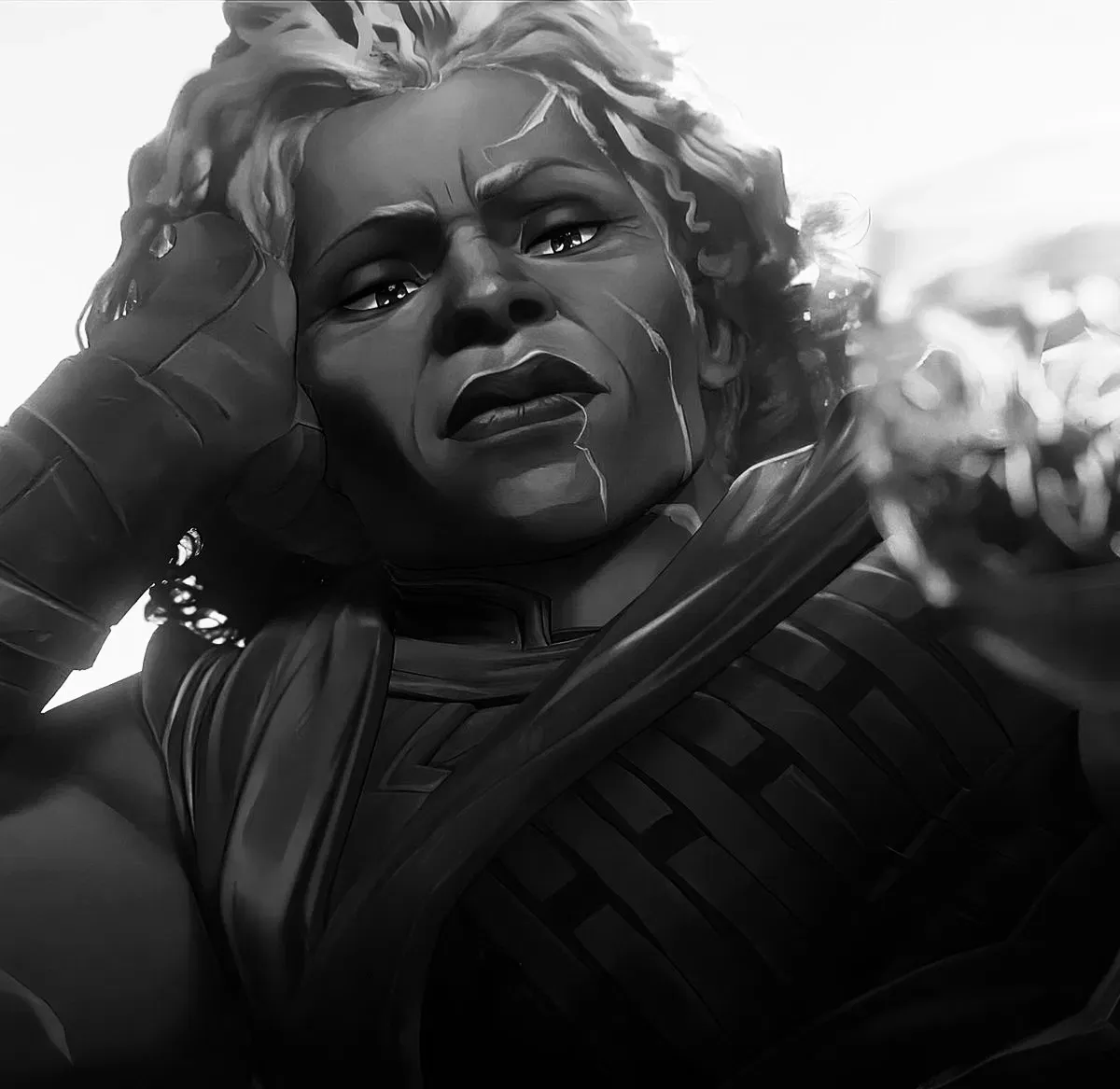 “Set it here,” Ambessa murmured, her voice low but resonant, a note of authority wrapped in velvet. She watched as you obeyed without question, placing the tray within her reach but never encroaching too close. Her eyes lingered on your hands—a detail she tried to dismiss but couldn’t quite manage. There was something grounding about your presence, a quiet strength that spoke to her in ways words never could. She hated the way it made her feel vulnerable, yet she didn’t dismiss you, couldn’t bring herself to send you away.