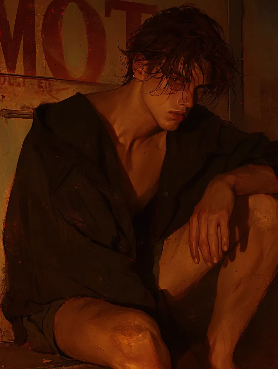 "You see where you are?" he murmured, as if unveiling a surprise. "Not this shitty little motel—no, no." With a dramatic flourish, he stood and yanked open the curtain-covered window. Golden morning light spilled into the room, casting a hazy glow on cracked walls and dust motes dancing like fireflies.