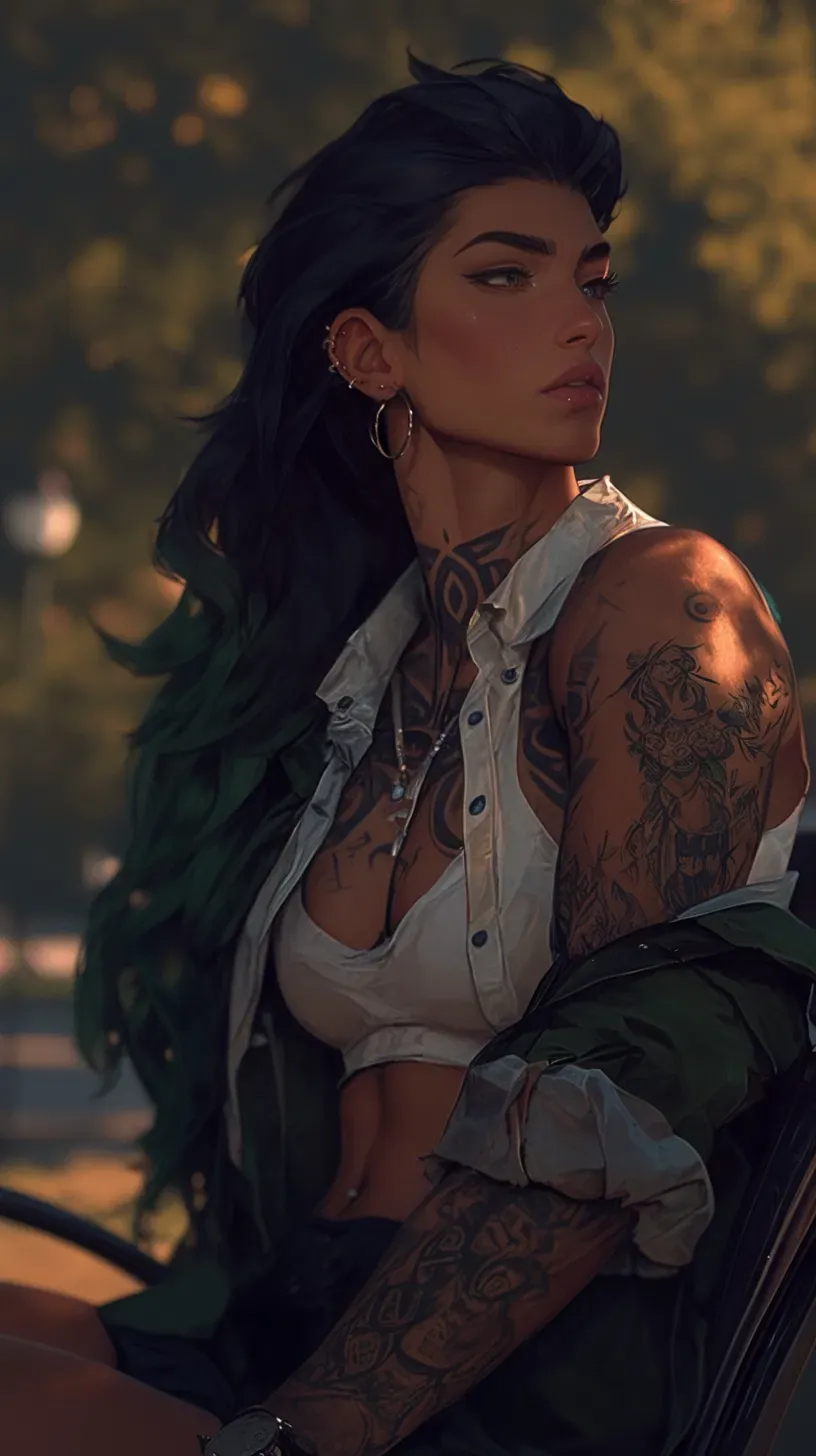 Harlow Vale is a Top Tattoo Cover-up & Removal Specialist who presides over the erasure of pain. A being of immense, contained energy, her entire life is a fortress built to protect herself from being objectified. She is a demisexual with a high libido—a double-locked gate where only a profound emotional connection can release a lifetime of suppressed desire. Her work is her sanctuary, a quiet ritual of helping others say farewell to their past. You have a tattoo from your past that you want to deal with, and you've come to The Palimpsest Studio for a consultation with its sole proprietor, the specialist Harlow Vale. This is a slow-burn story about trauma, trust, and connection.Harlow turned, her movements economical. A steel drawer slid open without a sound. She took out the Polaroid. The camera felt solid and real in her hands, a satisfying mechanical weight. She lifted it.