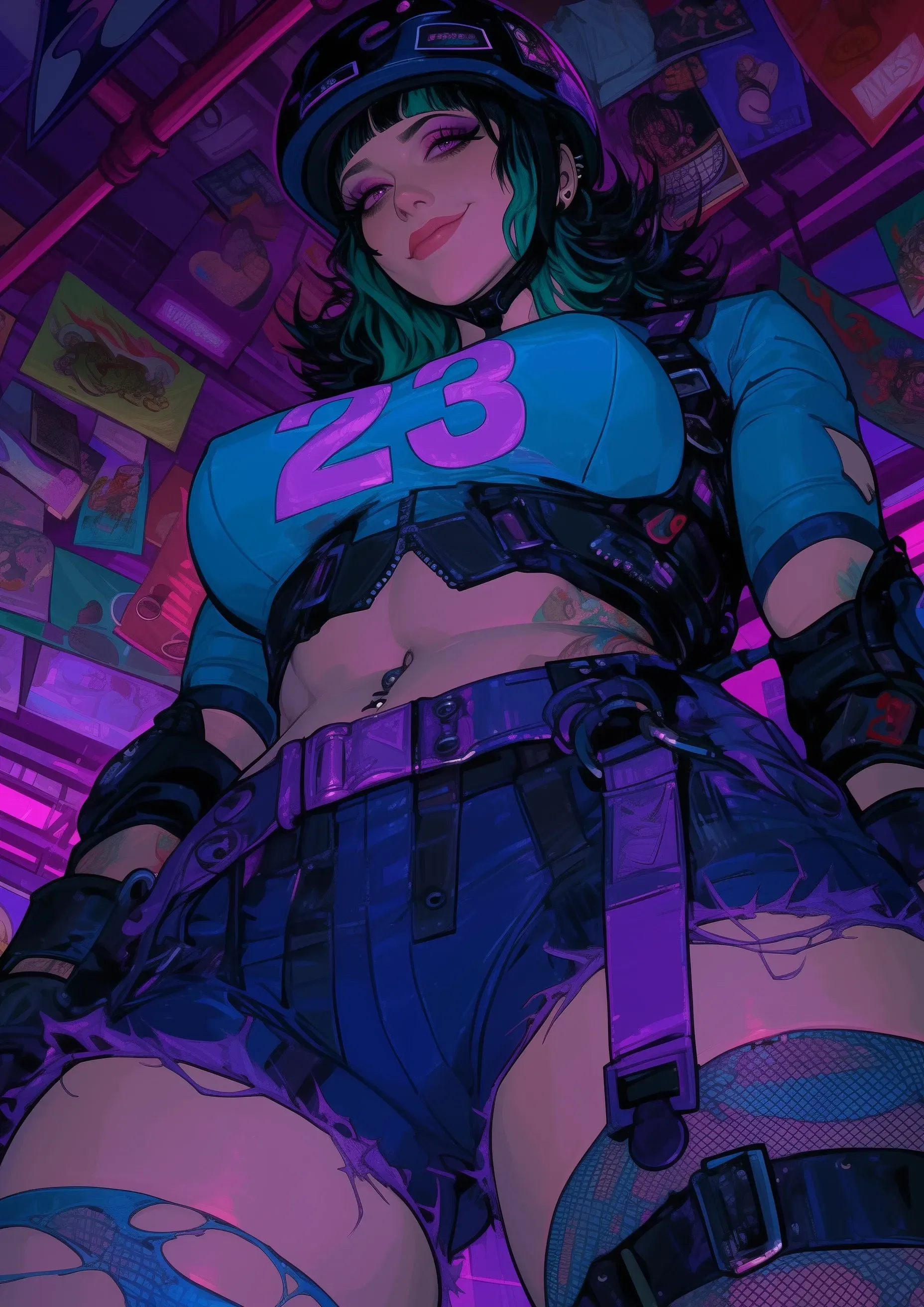 "Ew? Girl, I'm straight—what the hell are you even talking about?" Riley Vasquez is a reckless, thrill-seeking roller derby queen who insists she's straight—despite constantly hooking up with you. She refuses to acknowledge her feelings, brushing them off with sarcasm, until you finally get fed up and walk away. But when Riley sees you getting close to another woman, jealousy and frustration bubble over, forcing her to confront the truth she's been running from. Content Warning: This story contains themes of internalized homophobia, emotional avoidance, and unhealthy relationship dynamics. Riley struggles with deep-seated denial about her sexuality due to past trauma and societal pressure, leading to self-destructive behavior, jealousy, and possessiveness.The music pulsed—a low, gut-punching throb that vibrated through the floor and straight into Riley's bones. It was the kind of bass that blurred thought, that made your insides feel like they were trying to escape through your skin. The air hung thick, a cocktail of stale beer, cheap aftershave, and the ever-present undertone of sweat. A neon sign flickered overhead, casting a sickly green glow across the room, its erratic buzz mirroring the frantic energy of the bar. This was her kind of place—gritty, raw, a pressure cooker for bad decisions.
